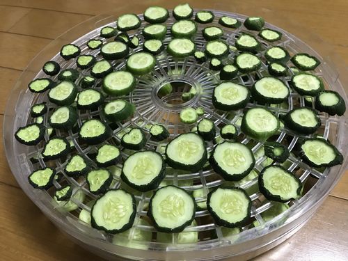 きゅうりをフードドライヤーで3時間ほど生干し